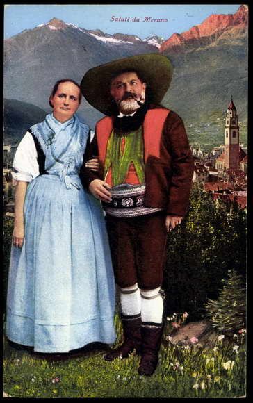 The city of Meran lies at the point where the Etsch takes a sharp turn and heads south. There is a bodice costume miedergwand which is worn here. The Burggrafenamt, the formal costume is often worn here as well, see below.