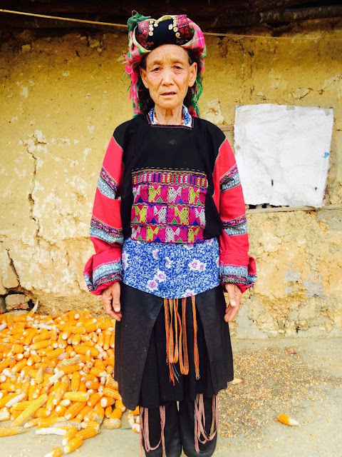 This is what the Vietnamese call them. These people live in the northern districts of Lào Cai Province, right next to the Yunnan border. There are perhaps 8000 of these people in Vietnam, with a further 4000 in Yunnan. This costume falls into the Jianshui Style of the Southern Yi. [See my last article] The costume consists of pants, a shirt that fastens on the side, a bib type apron, and a kerchief or wreath on the head. This would look familiar from my other articles on Yi costume.