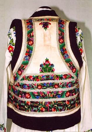 Embroidered sheepskin vests, both hip length and somewhat longer, are worn by both men and women.