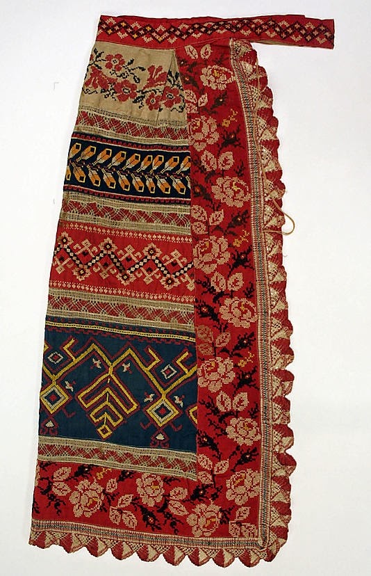 A casual survey of photographs will turn up many examples of this type of embroidery. Here is a married woman's festive outfit from the beginning of the 20th cent now found in a Museum in Moscow.